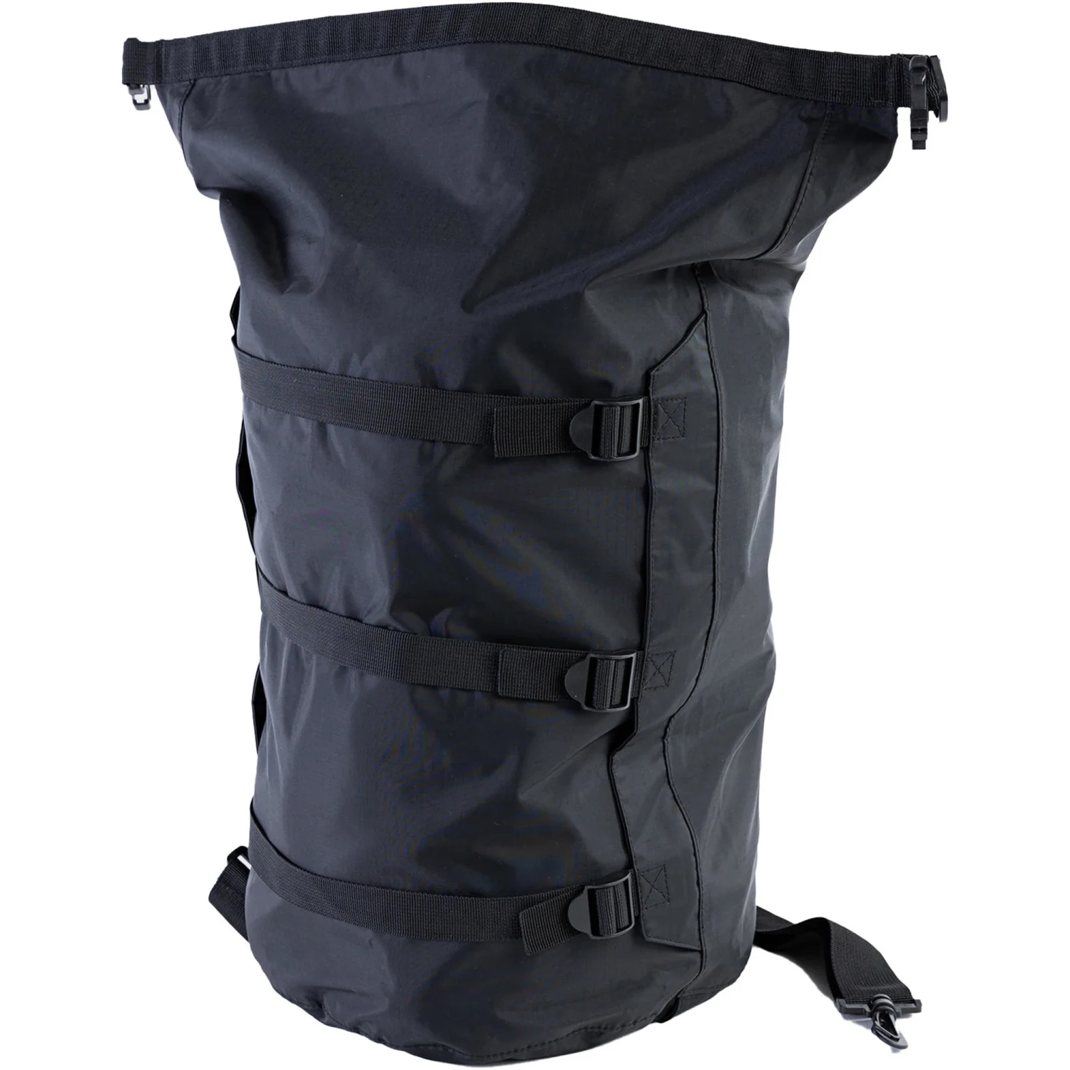 The dryrobe® Compression Travel Bag will comfortably pack any size of dryrobe® Advance or Towel dryrobe®. Simply put the dryrobe® in the bag, rollover and clip the top, twist the valve open, squash all of the air out by kneeling on it, then pull the compression straps tight and twist the valve closed.