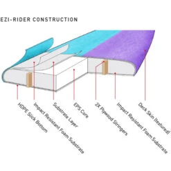 EPS (Extruded Polystyrene) highly waterproof & lightweight. 2X stringers (3X stringers on 8’0 & 9’0) – increase board strength and maintain rocker.
